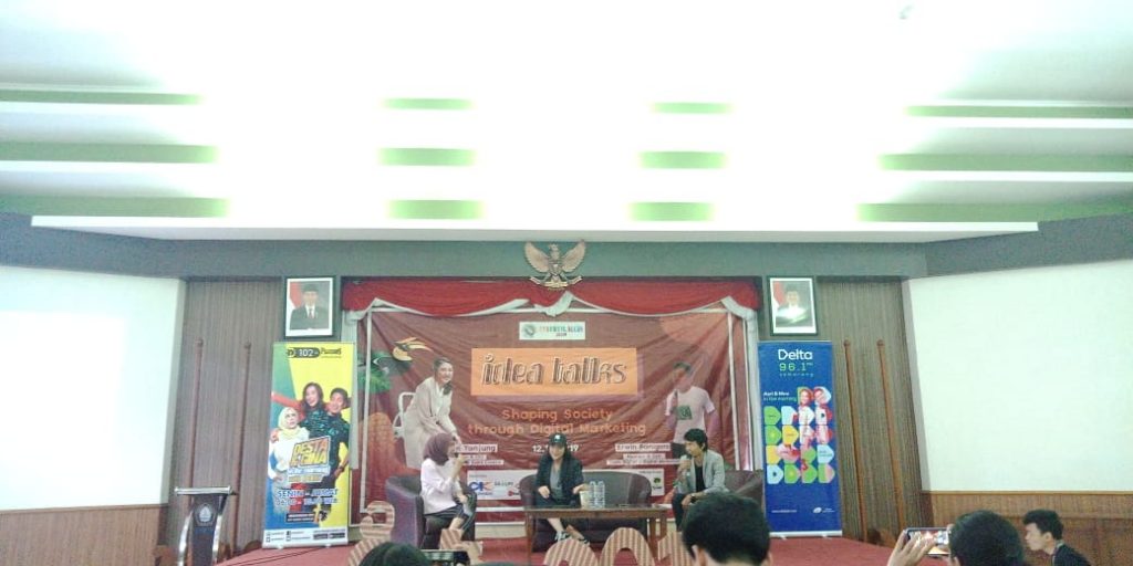 Idea Talks 2019 a national seminar organized by the Student Association of Communication Sciences Department, University of Diponegoro. This event is one of a series of events COMMWEEK event. Held on October 12, 2019 in the Auditorium of Faculty of Social UNDIP, IdeaTalks this year carries the theme ‘SHAPING SOCIETY THROUGH DIGITAL MARKETING’ expected that the younger generations can cultivate and develop creativity in the digital age of marketing so that it can be adapted to the society behavior-pattern.