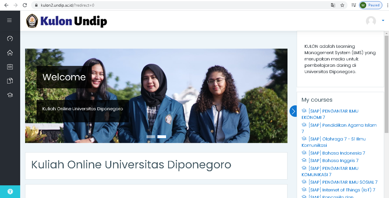 As an effort to prevent the spread of the Covid-19 virus, the Faculty of Social and Political Sciences (FISIP) Diponegoro University through Circular No.2912 / UN7.5.7.1.2. / EP / 2020 officially announced the implementation of online lectures in March 2020 after the government confirmed a positive case of Covid-19 in Indonesia. Online lectures are carried out by utilizing various facilities such as SIAP Undip, Kulon Undip, Microsoft Teams, WhatsApp groups, and so on. This online lecture lasts until the end of the odd semester and will continue to be held in the next even semester.