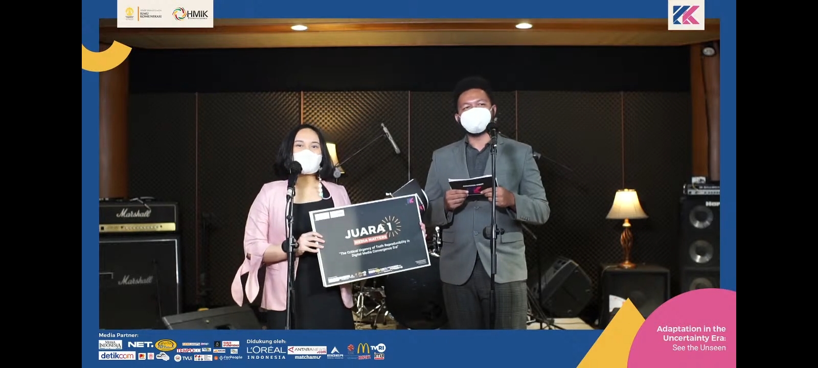 The announcement of the winners of the Media Matters competition was broadcast live on the YouTube channel of Pekom UI on April 9, 2021. The first winner was won by the Timang-Timang team from Universitas Diponegoro, namely Arlina Satiti Mugi Laras and Tjen, Maurilia Zerlina, two outstanding students from the Undip’s Communication Study Program, with a campaign program KaLiTuJu.