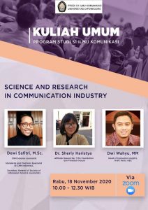 Semarang — Program Studi S1 Ilmu Komunikasi Universitas Diponegoro (Undip) kembali mengadakan webinar pada hari Sabtu (21/11) yang diselenggarakan secara daring via Zoom Meeting. Webinar