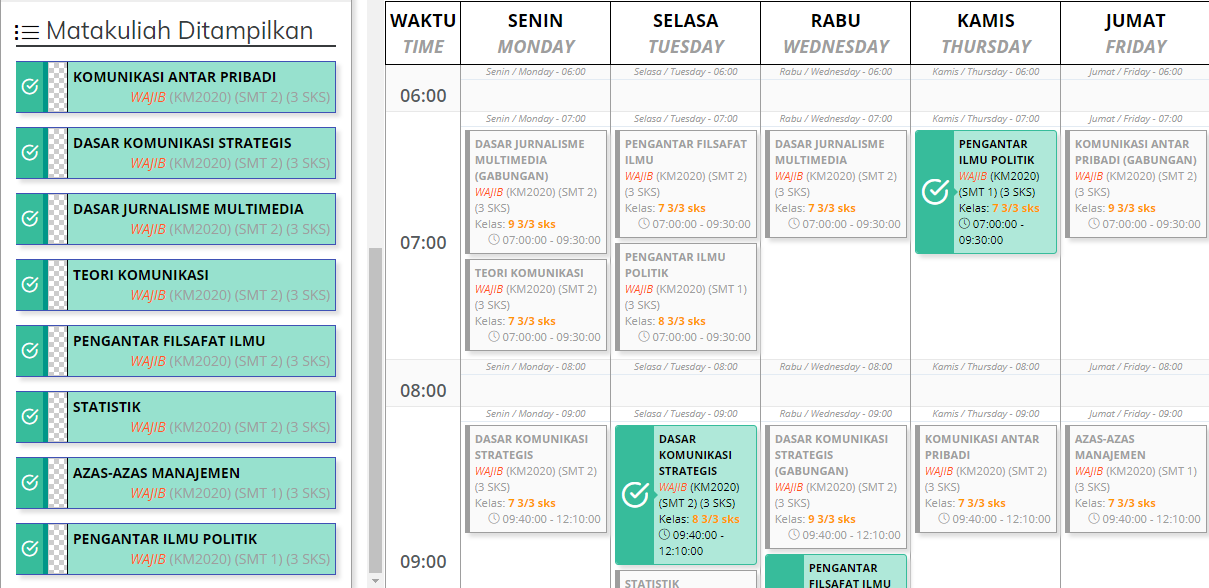 “Nah, sebenarnya akan lebih enak kalau dari semester satu sampai semester selanjutnya contoh yang komunikasi strategis itu kan dibagi dua kelas teman-teman konsisten aja kalau biasanya kelas 7 ya kelas 7 kalau biasanya kelas 8 yang kelas 8, tapi itu kan kita tidak bisa paksakan karena sifat mata kuliah ini kan terbuka,“ ujarnya.