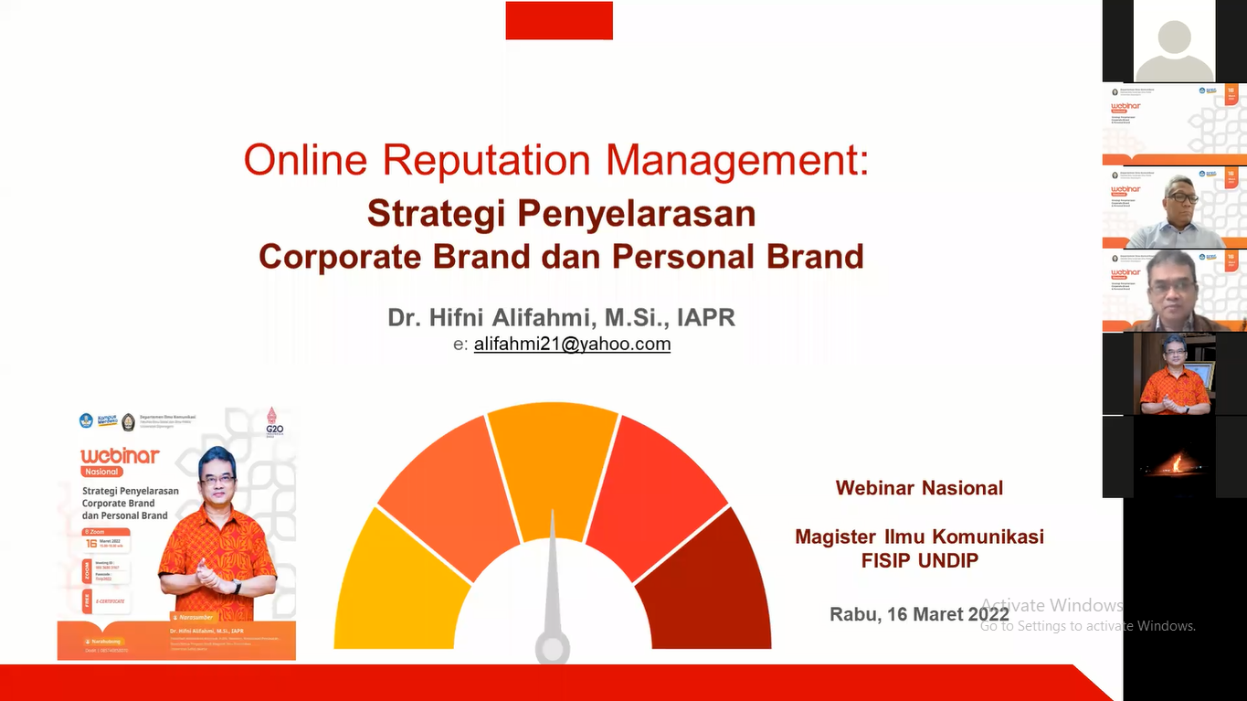 Semarang – Perkembangan internet yang cepat mendorong adanya kedinamisan pada masyarakat dalam berkomunikasi secara digital. Oleh Departemen Ilmu Komunikasi Universitas Diponegoro (Ilkom Undip), hal ini dilihat sebagai salah satu fenomena yang patut untuk dikaji lebih dalam melalui webinar nasional bertajuk “Strategi Penyelarasan Corporate Brand dan Personal Brand”.