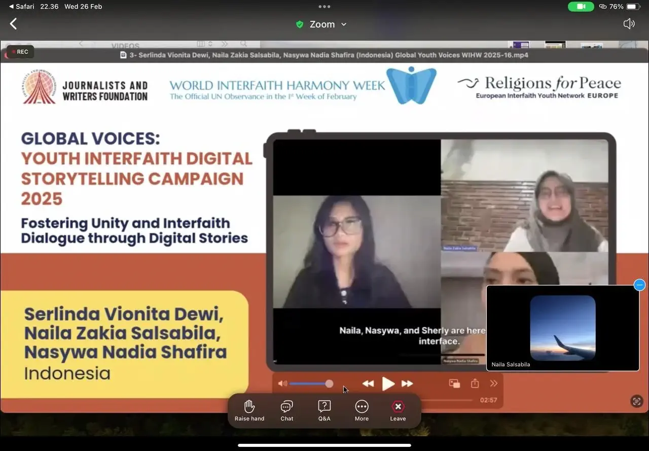Nasywa Nadia Shafira, mahasiswi Ilmu Komunikasi Universitas Diponegoro (UNDIP) angkatan 2021, berhasil mengharumkan nama kampus dalam ajang internasional. Bersama dua rekannya, Sherly dan Naila, mereka meraih kemenangan dalam kompetisi video Global Youth Voices: Digital Interfaith Storytelling Campaign 2025 yang diselenggarakan oleh Journalists and Writers Foundation (JWF), organisasi berbasis di New York, Amerika Serikat.