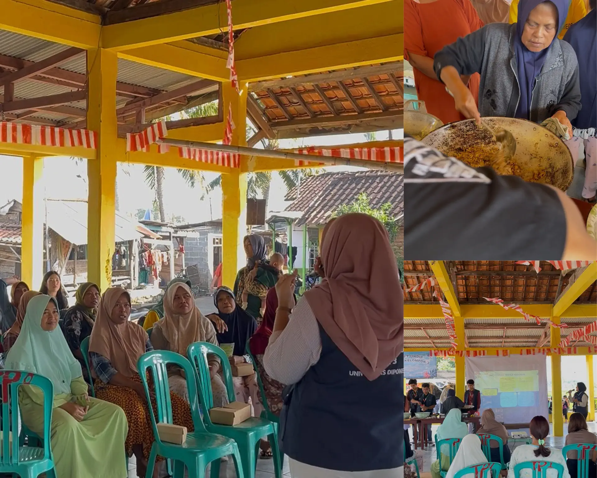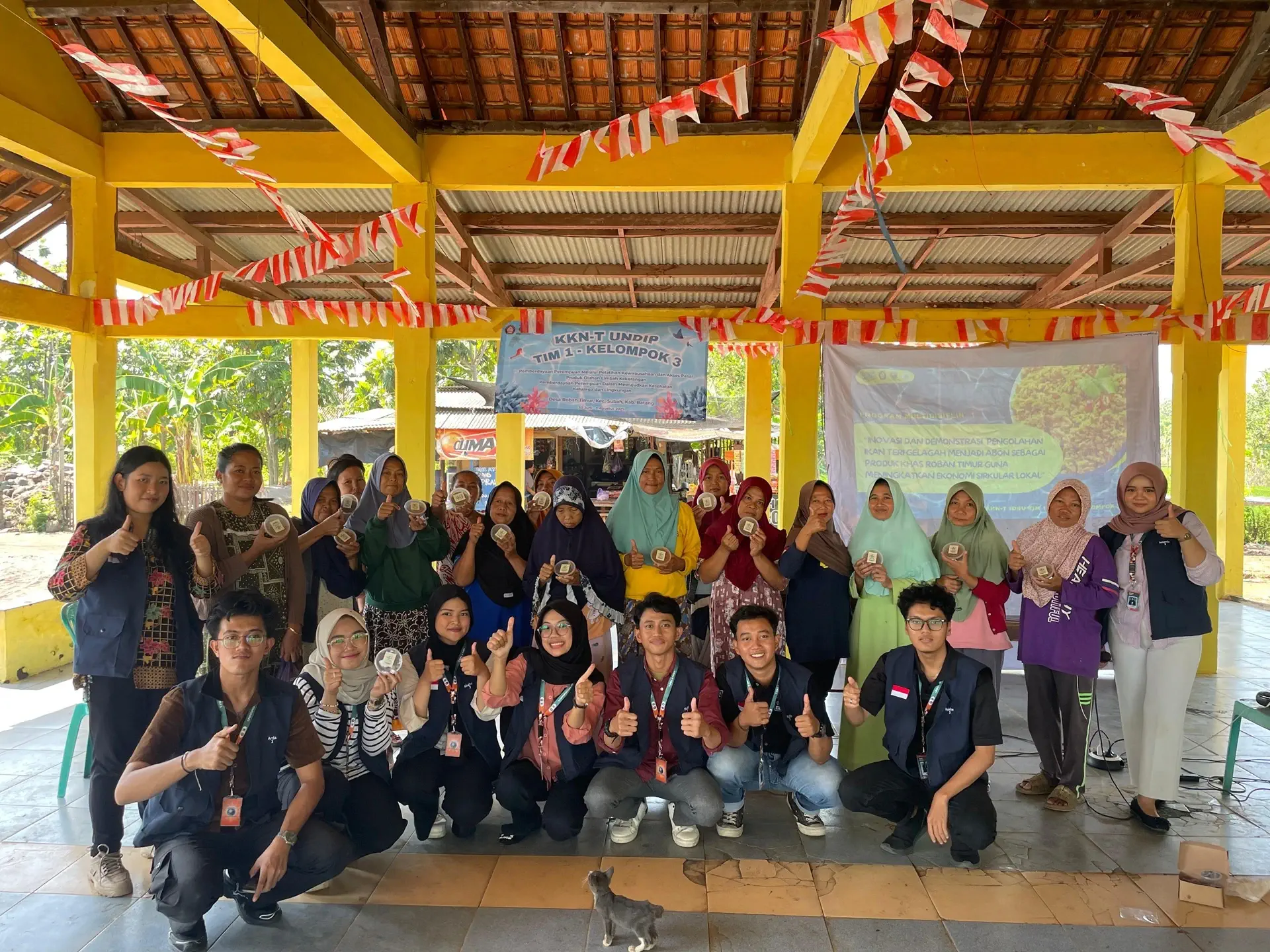 Berdasarkan realita tersebut, mahasiswa Kuliah Kerja Nyata Tematik (KKN-T) Kelompok 3 Universitas Diponegoro mengadakan program berjudul “Inovasi Dan Demonstrasi Pengolahan Ikan Teri Gelagah Menjadi Abon Sebagai Produk Khas Roban Timur Guna Meningkatkan Ekonomi Sirkular Lokal” yang dilaksanakan pada Selasa, 22 Juli 2025 di Tempat Pelelangan Ikan (TPI) Roban Timur. Kegiatan ini sejalan dengan tema program multidisiplin kelompok tersebut terkait pemberdayaan perempuan melalui pengembangan wirausaha dan akses pasar lokal. Program ini melibatkan mahasiswa Ilmu Ekonomi, Psikologi, Keperawatan, Kimia, Hukum, Agroekoteknologi, Teknik Industri, Ilmu Komunikasi, dan Sastra Inggris.