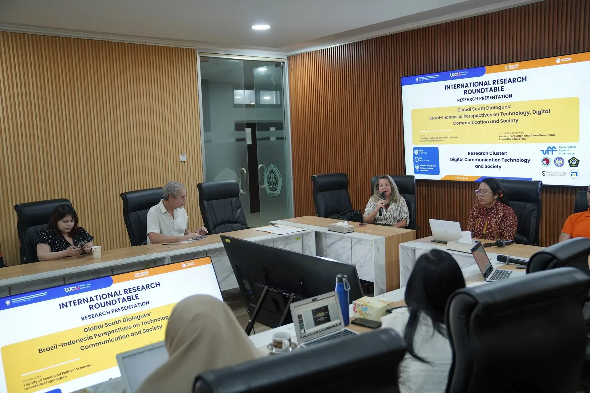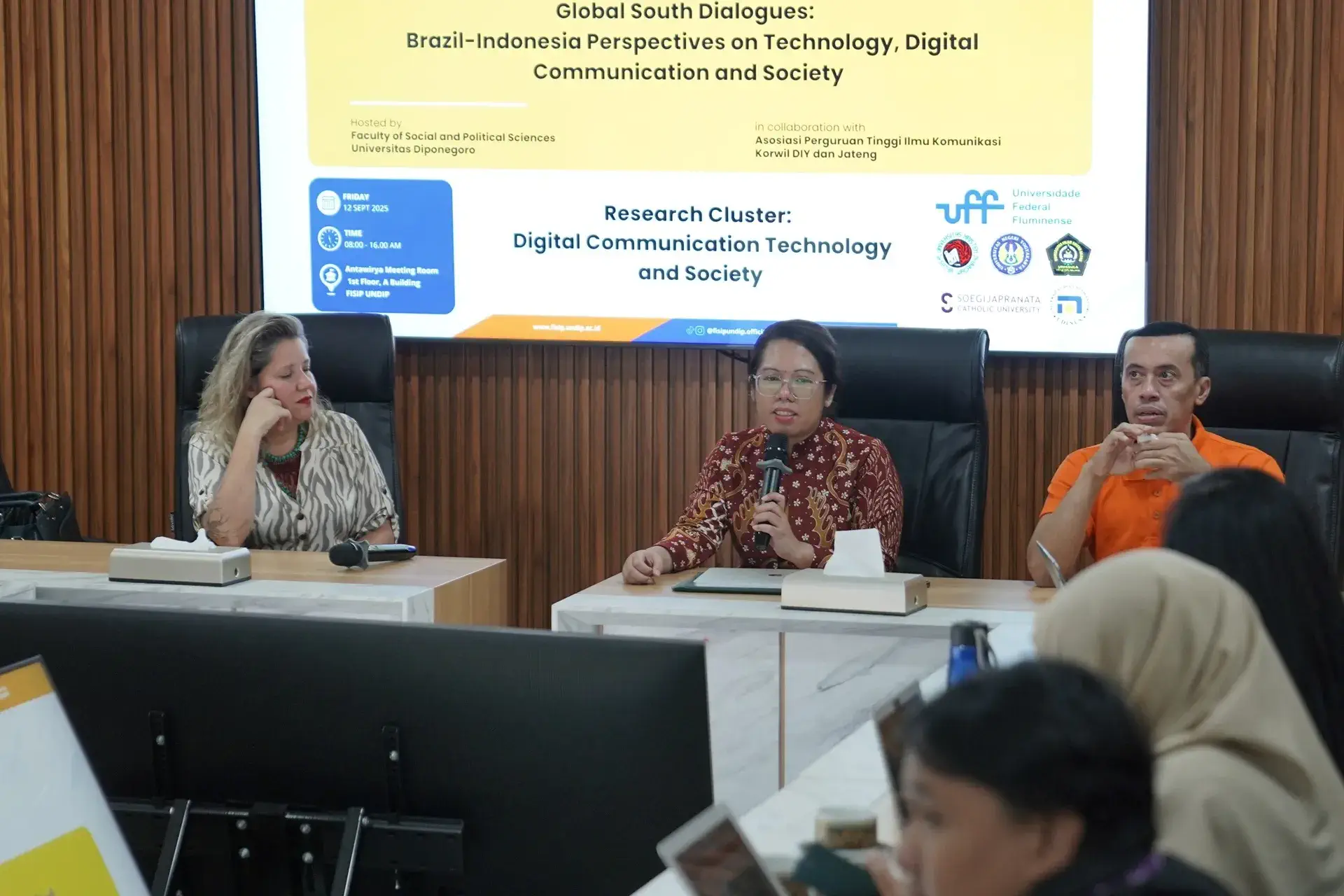 Semarang, 12 September 2025 – Departemen Ilmu Komunikasi FISIP Undip bekerjasama dengan ASPIKOM Jateng-DIY menyelenggarakan International Research Roundtable dengan tema “Global South Dialogues: Brazil–Indonesia Perspectives on Technology, Digital Communication, and Society” pada Jumat, 12 September 2025, bertempat di Antawirya Meeting Room, Gedung A lantai 1, FISIP UNDIP.